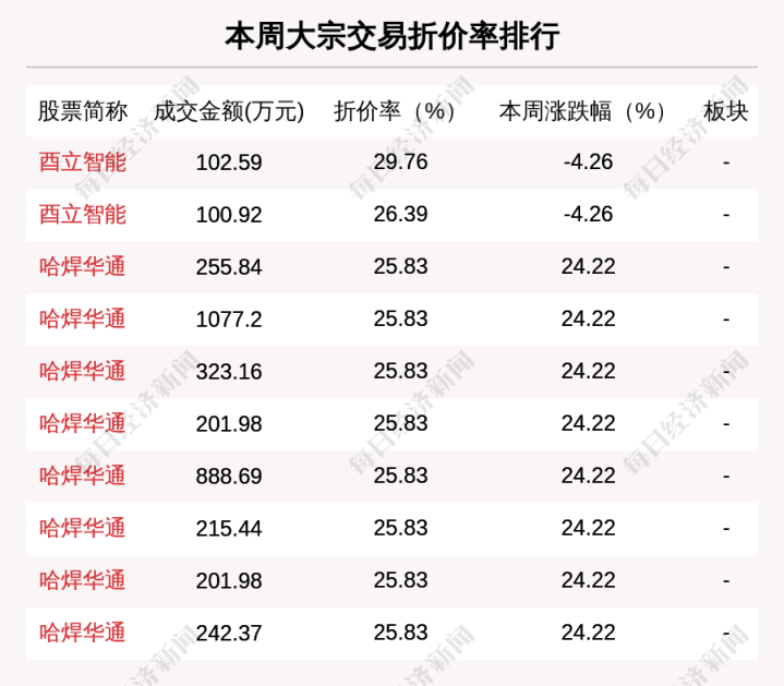 折价交易方面,本周有519笔大宗交易折价率超过10%。